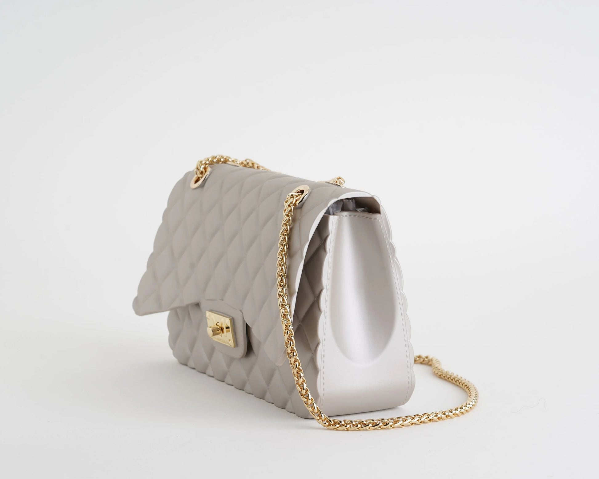 Lasciati conquistare dall'eleganza audace di questa borsa a spalla, un accessorio che ridefinisce il concetto di lusso quotidiano. Realizzata interamente in gomma di alta qualità, questa borsa unisce un'estetica sofisticata a una praticità sorprendente.