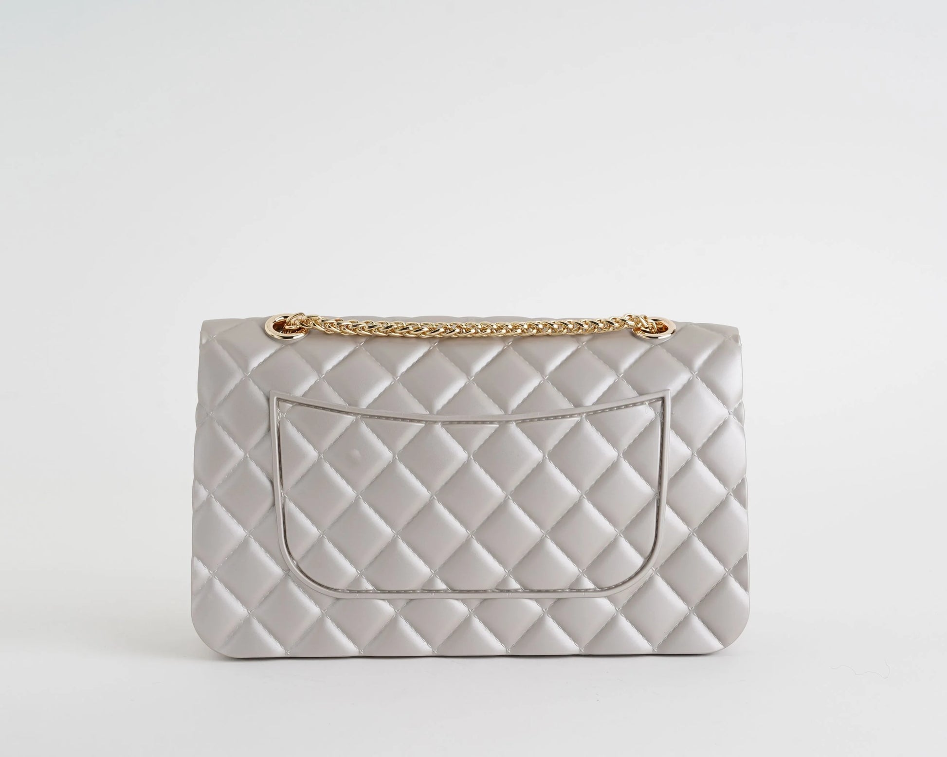 La texture matelassé, lavorata con maestria artigianale, conferisce un tocco di ricercatezza e un fascino senza tempo.