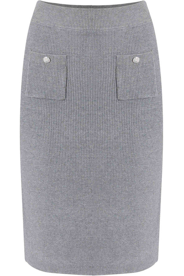 Lo stile classico di questa gonna in maglia è impreziosito dal dettaglio di bottoni gioiello sulle tasche frontali. Il capo presenta una linea dritta e una vestibilità regolare.