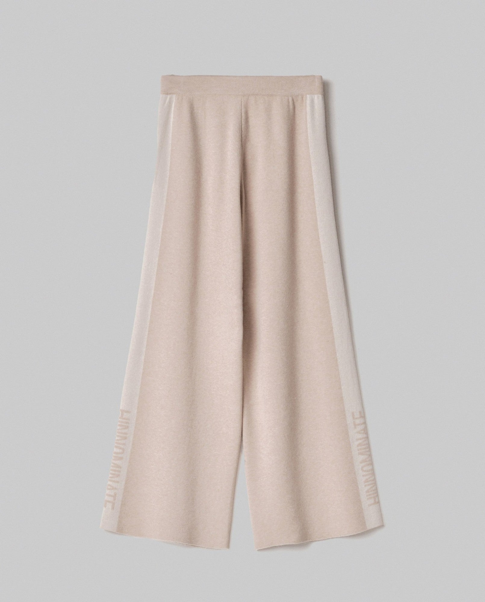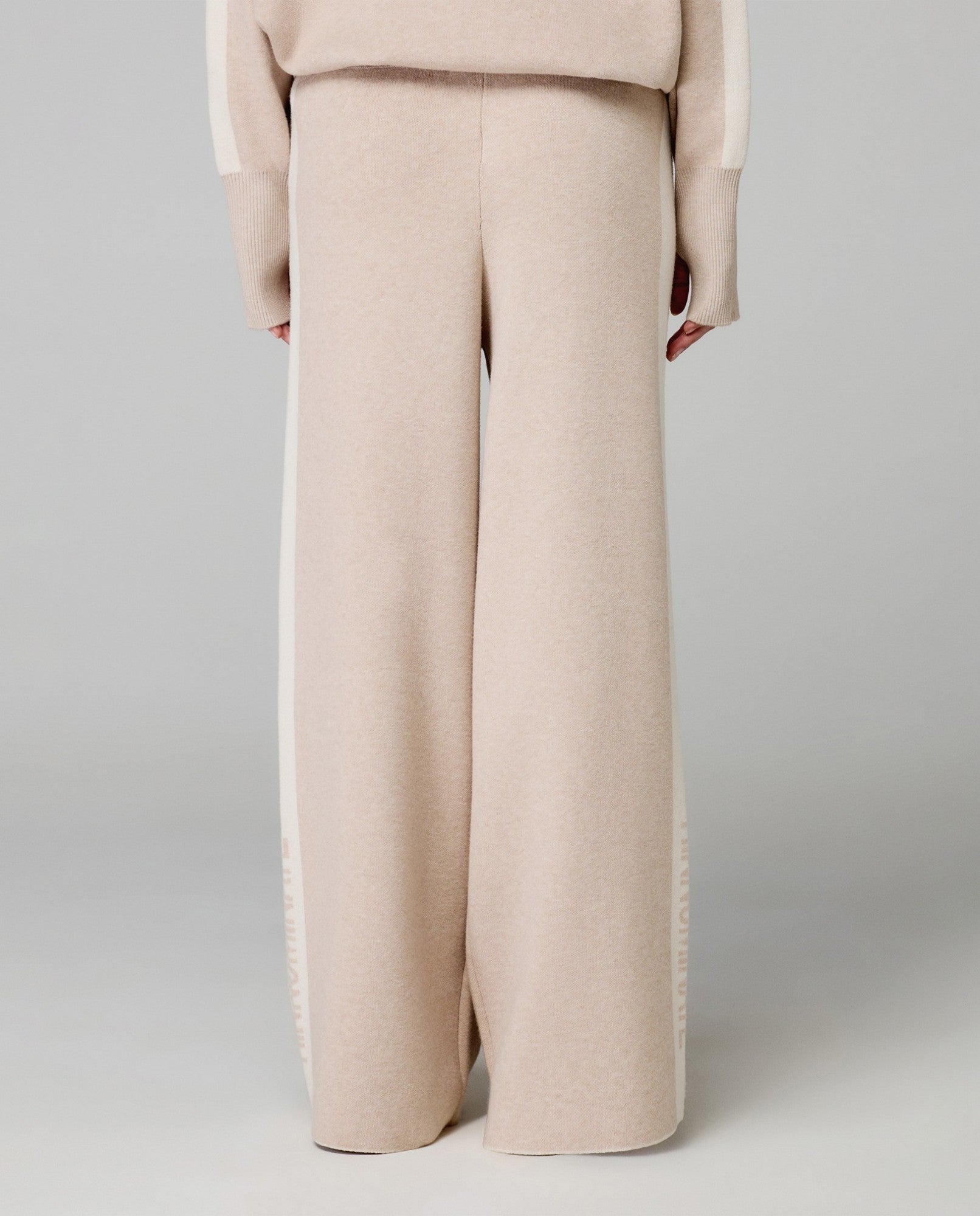 Pantalone In Maglia A Palazzo Con Bande In Contrasto E Logo In Punto Rovescio