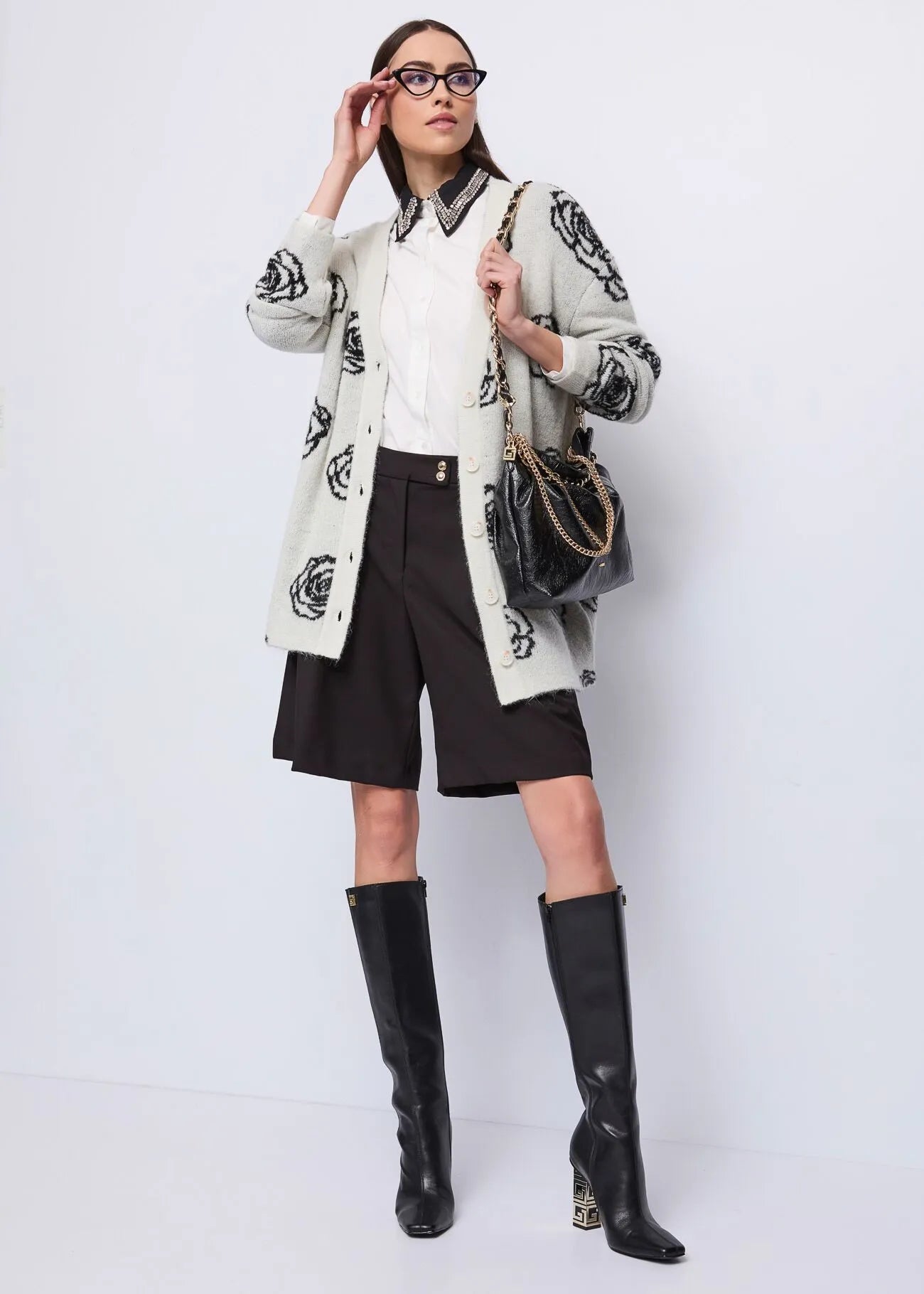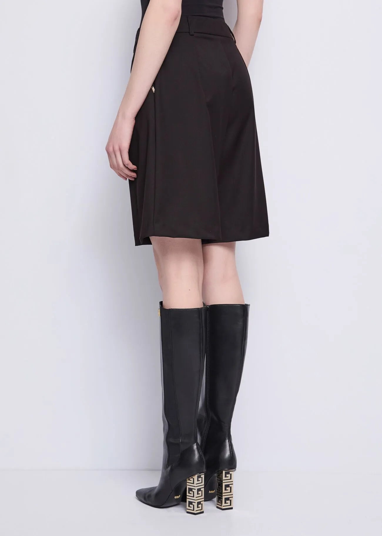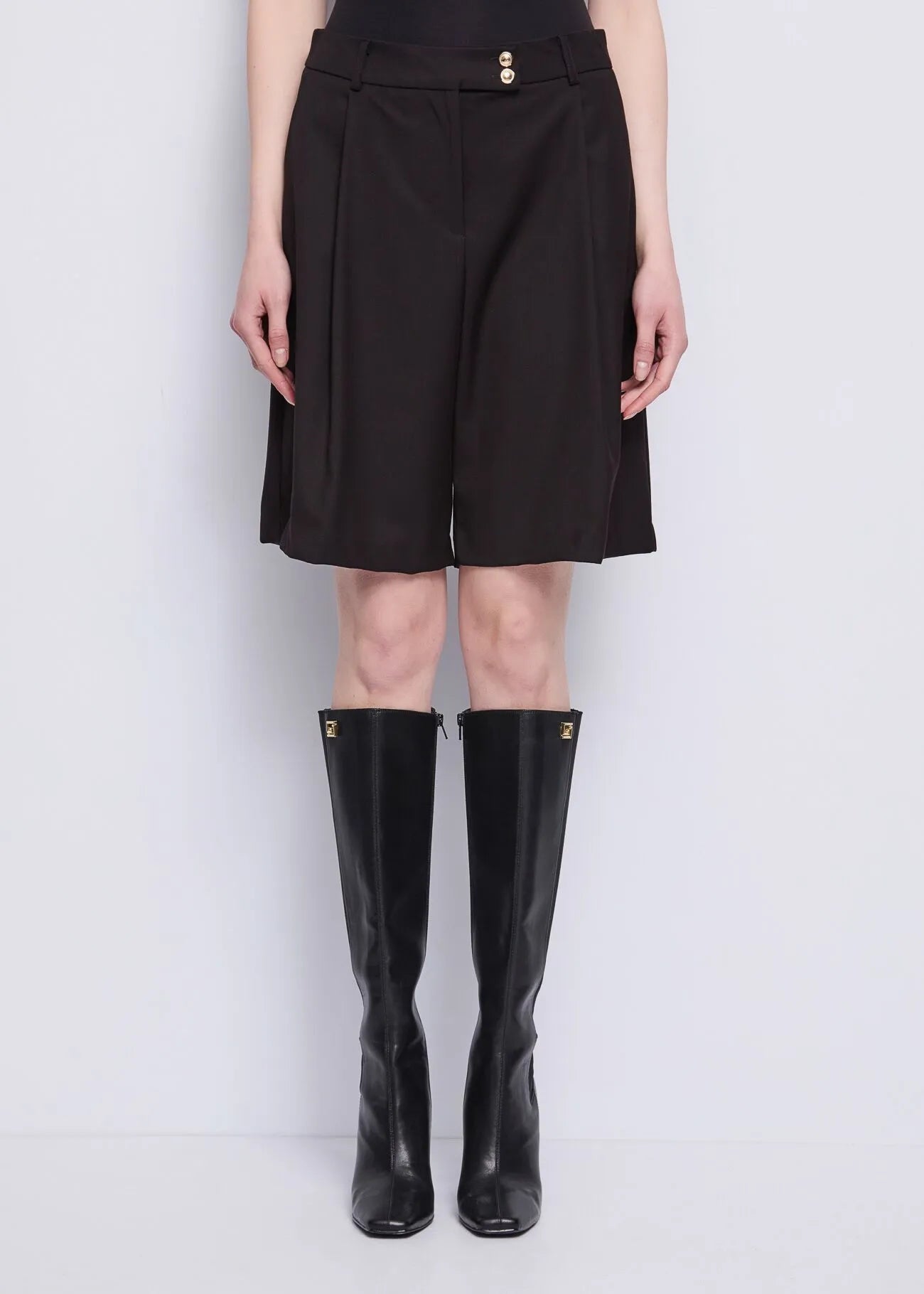 Scegli i bermuda in misto viscosa elasticizzata con pinces, tasche sui fianchi e bottoni gioiello. Una combinazione perfetta tra eleganza e comfort.