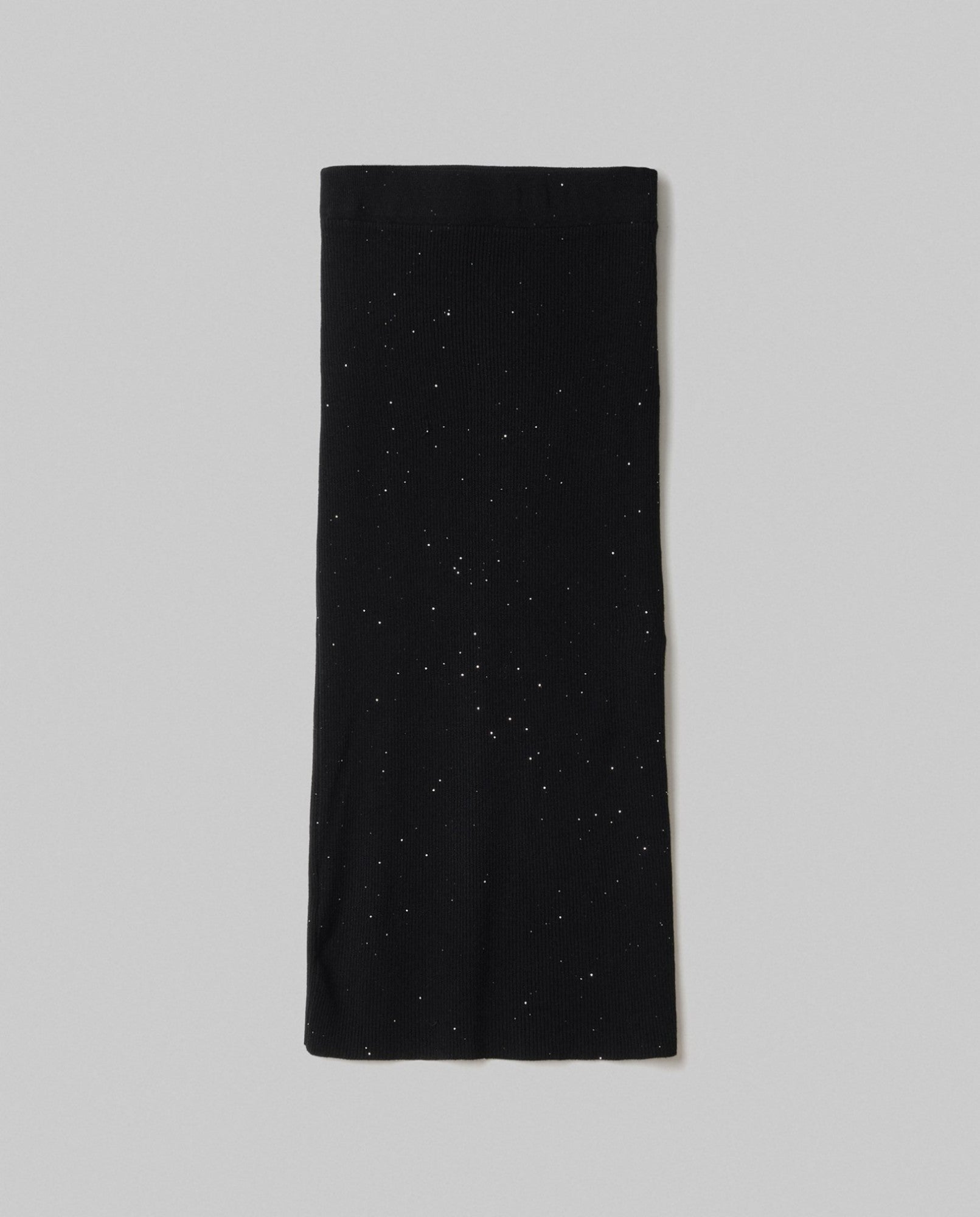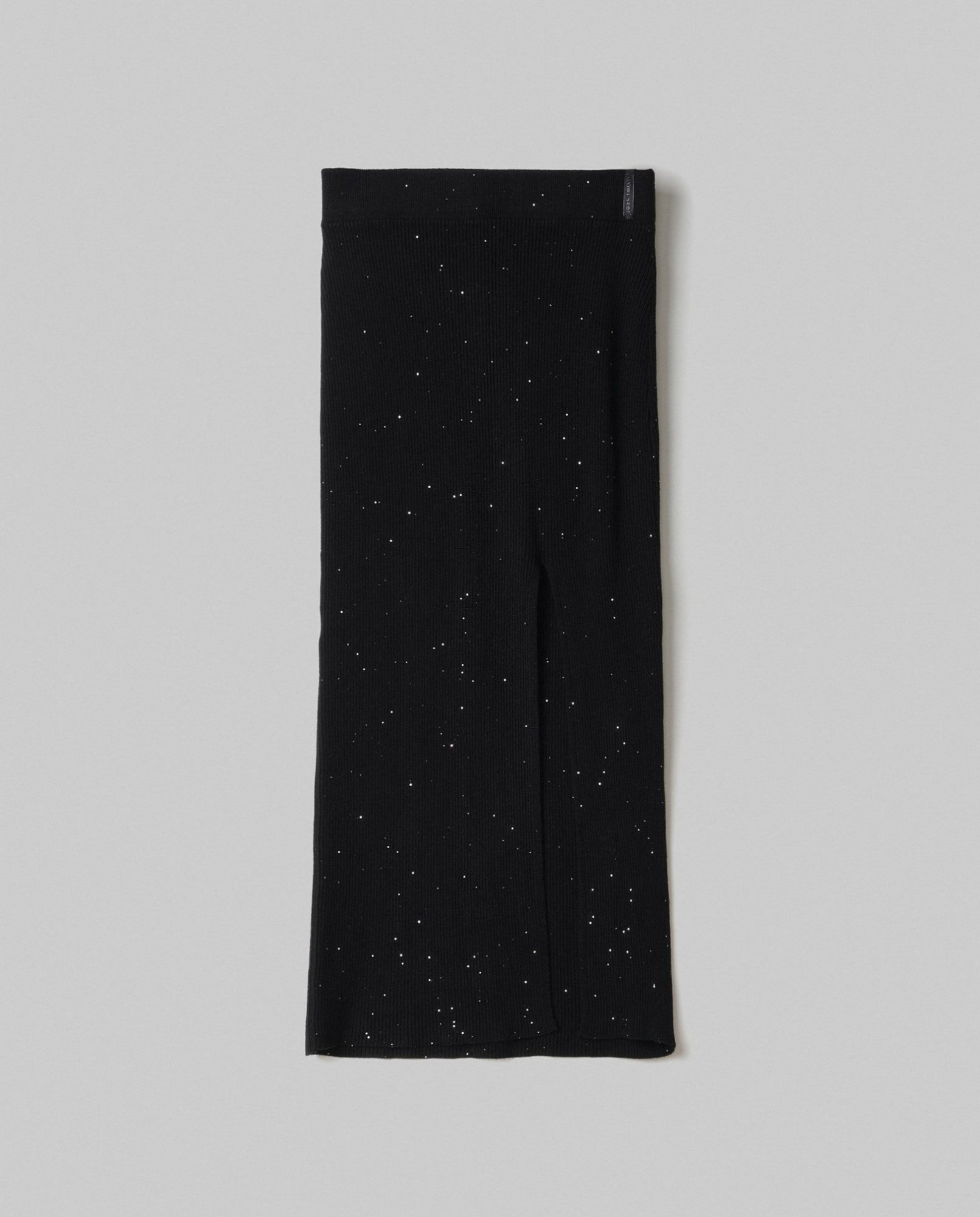 Gonna Midi Con Ampio Spacco In Costina Con Paillettes