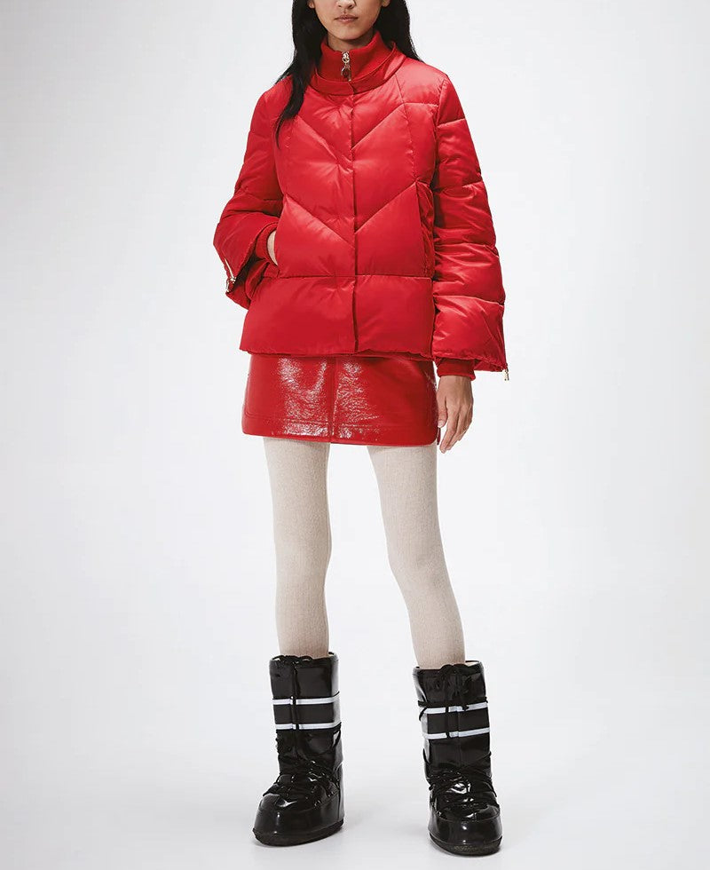 Il Piumino Ivy NENETTE, è un piumino corto con doppia chiusura a bottoni e lampo, cappuccio removibile tramite lampo, tasche a filo con lampo a scomparsa, tasca interna, lampo sulle maniche, rifiniture in lana su collo, polsi e fondo interno.