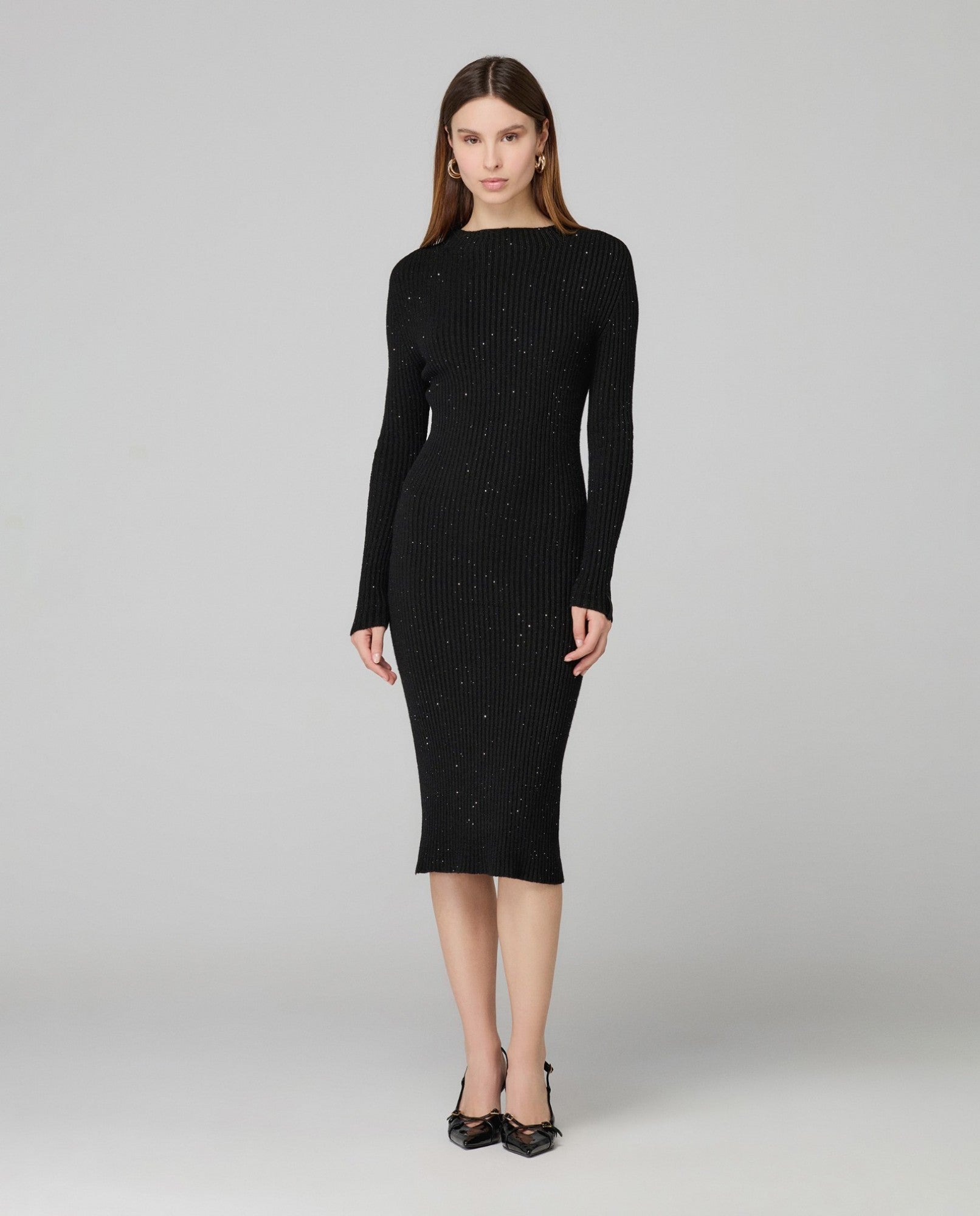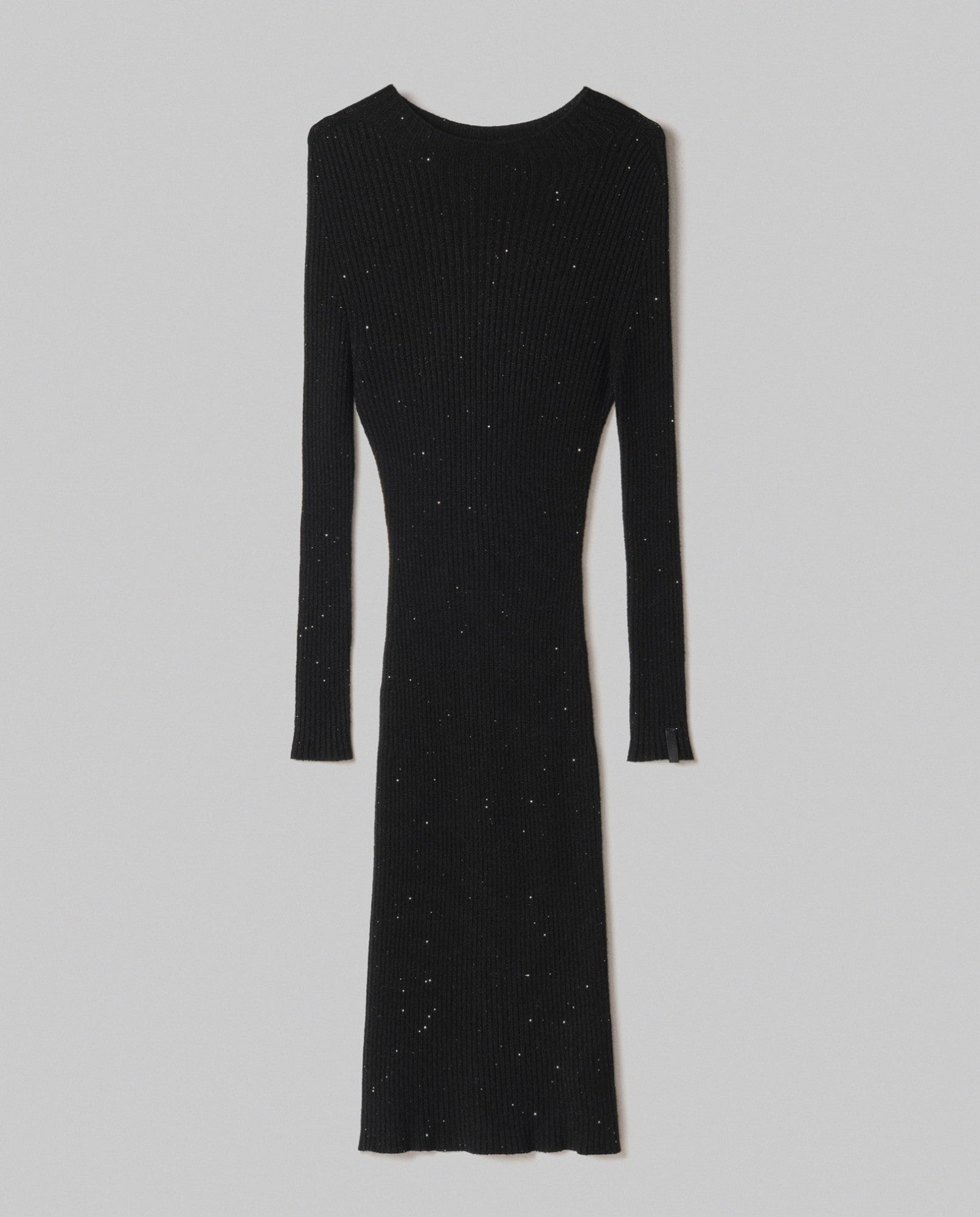 Abito Lupetto Lunghezza Al Ginocchio In Costina Con Paillettes